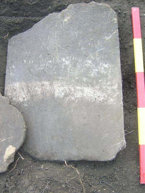 Headstone, moved out of position during machining, but still close to original position when recorded. Top is missing: