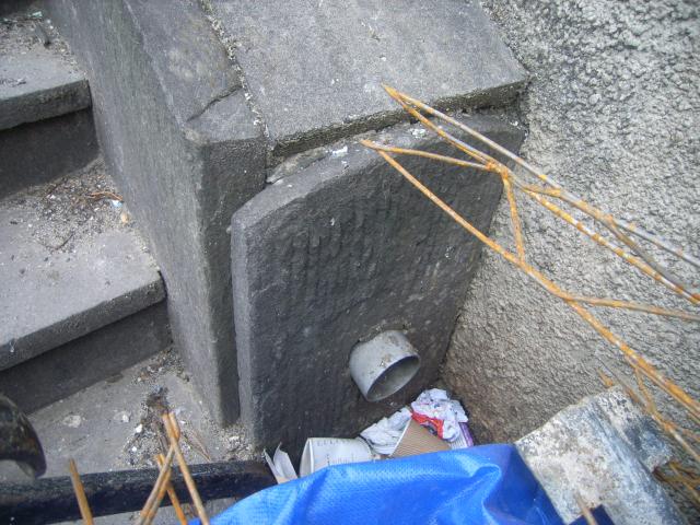 Round topped headstone with rounded shoulders. Uncovered by machine in front of north wall. Nothing readable.