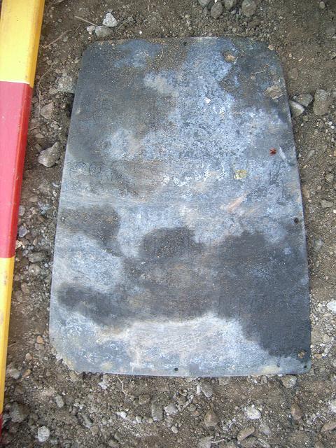 Ledger. The top right hand corner has been removed with a diagonal cut to shape it for incorporation into a wall: